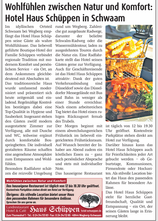 Genießen Sie einen unvergesslichen Aufenthalt im liebevoll geführten Boutique Hotel der Familie Schüppen im malerischen Ortsteil Schwaam bei Wegberg.